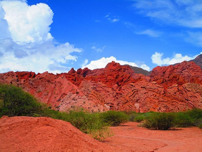 Continuamos viaje bordeando el Rio de las Conchas, apreciando las formas de las montañas compuestas por areniscas de vivos colores que sedimentaron en el período Terciario, hace unos sesenta millones de años (la Garganta del Diablo y el Anfiteatro). Regreso a la ciudad.